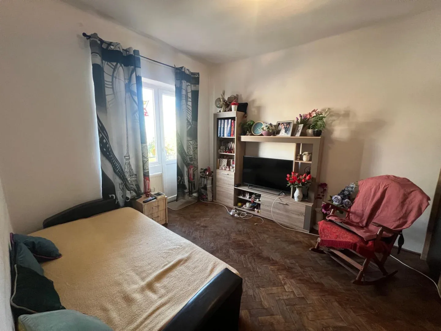 Apartamentul este semidecomandat, are o suprafață construită de 75 mp și este compartimentat astfel: